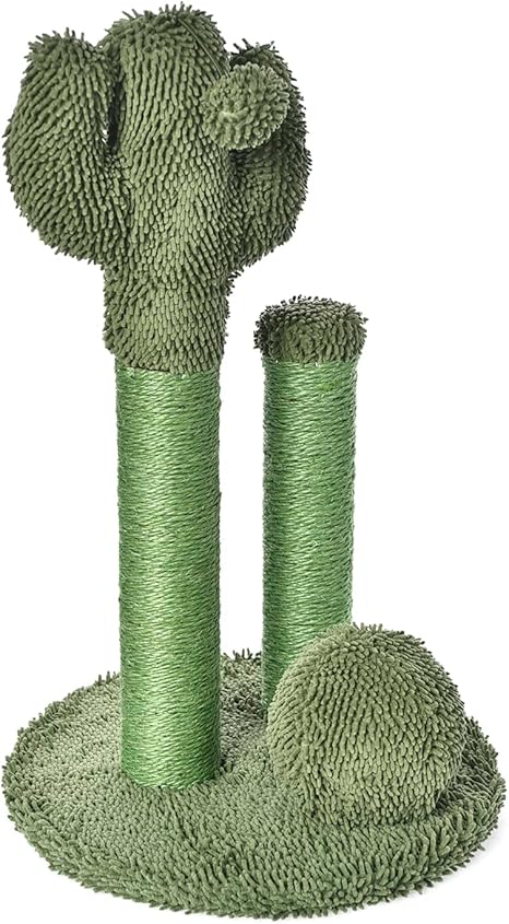 The Amazon Basics Cactus Scratching Post adds fun, flair, and scratching utility to your home. Shaped like a cactus with green sisal-wrapped posts and a soft platform, it’s both decorative and functional. It doesn’t have multiple tiers, but it excels as an addition to an existing cat environment or for apartments where space is limited.